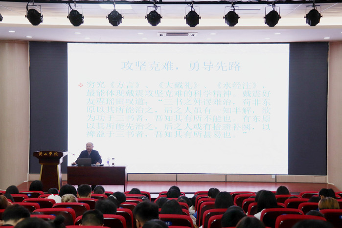 报告会上,潘定武详细介绍了徽州文化名人—戴震,在其一生治学中,秉持严谨求是的原则,勇于钻研探索,敢于怀疑和批判,致力于寻求“十分之见”“不以人蔽己,亦不以己自蔽”,探本求源,旨在闻道,抱经世之才,而以富民为本。