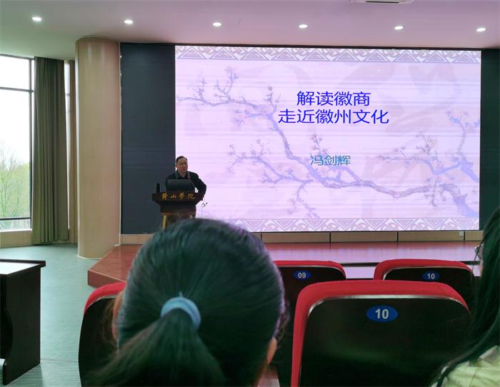 报告会上,冯剑辉通过生动的案例,对徽商的发展历程进行了详细的解读,展示了近代徽商发展的多个精彩瞬间,重点讲述了徽商的形成原因和发展阶段、徽商的拓展领域与途径和徽商“贾而好儒”的特点,阐释了徽商重教兴学、百折不挠的精神。