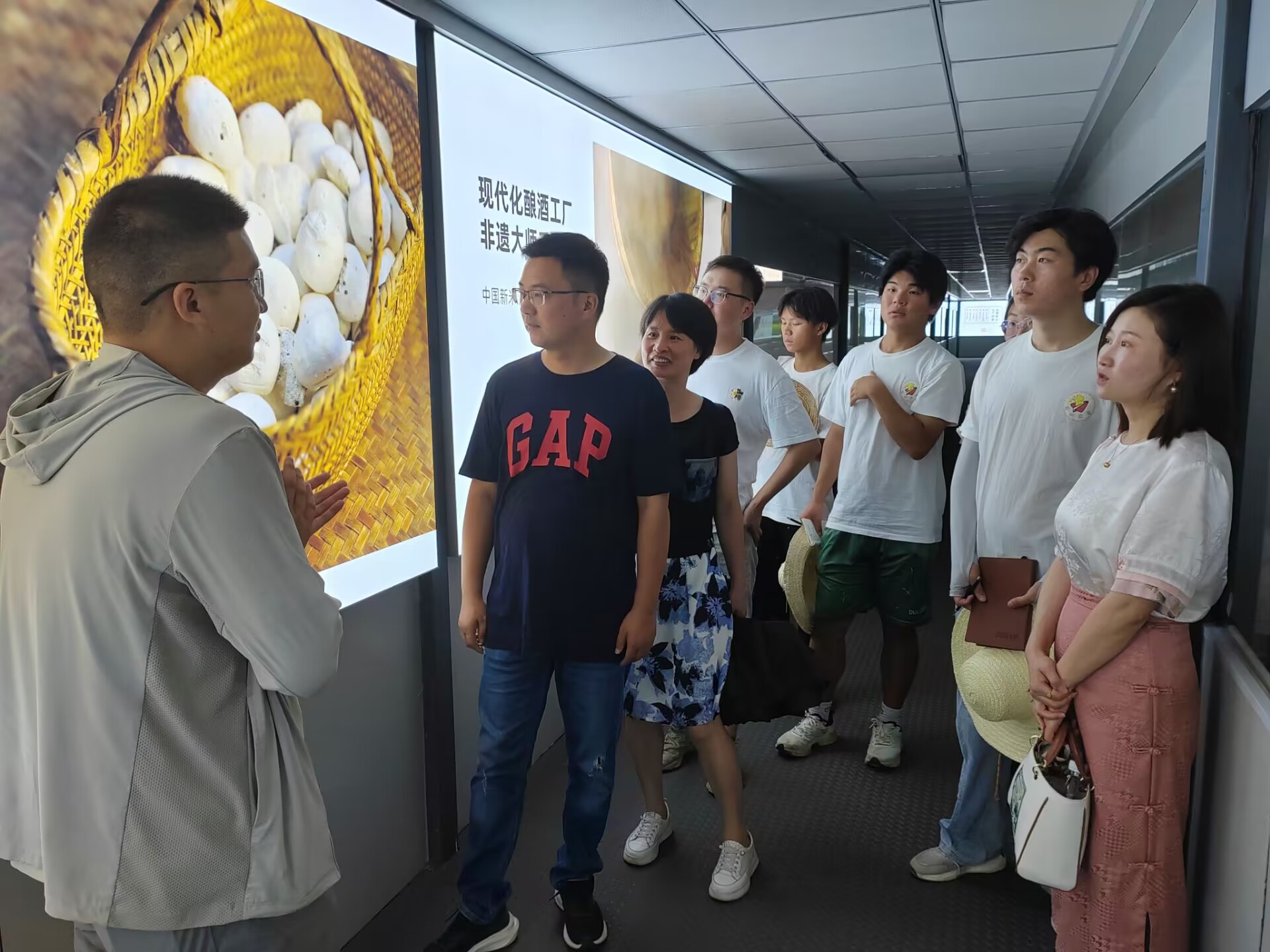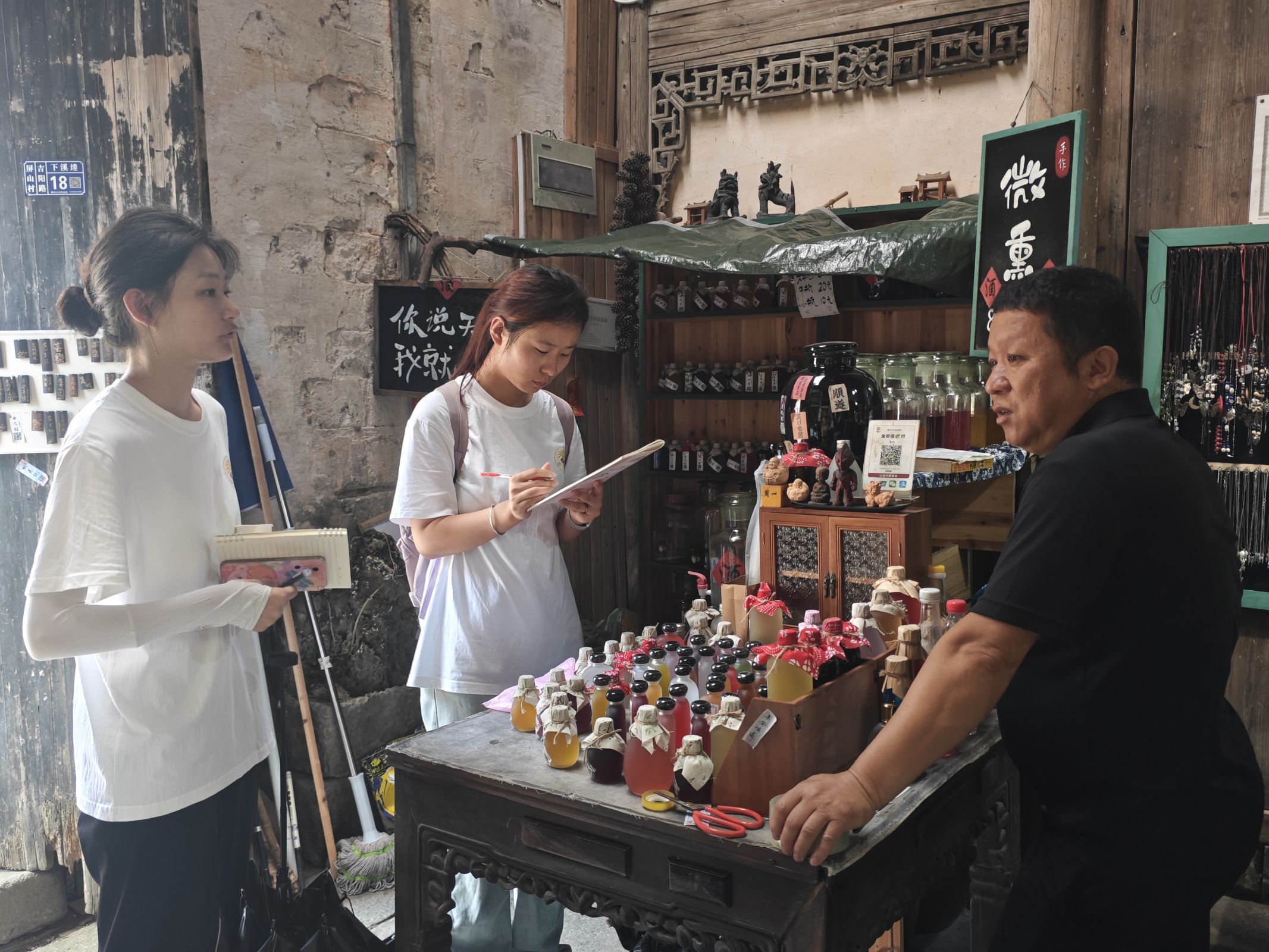 走进黟县七约米酒厂,第九期“行知课堂”南屏组的师生参观了有机米酒的发酵、装瓶、贴标全流程和电商直播全过程。在厂房里,负责人姜涛介绍了“七约”与徽商重契约、讲诚信的文化渊源,讲述了七约黑米酒传统酿造技艺。
