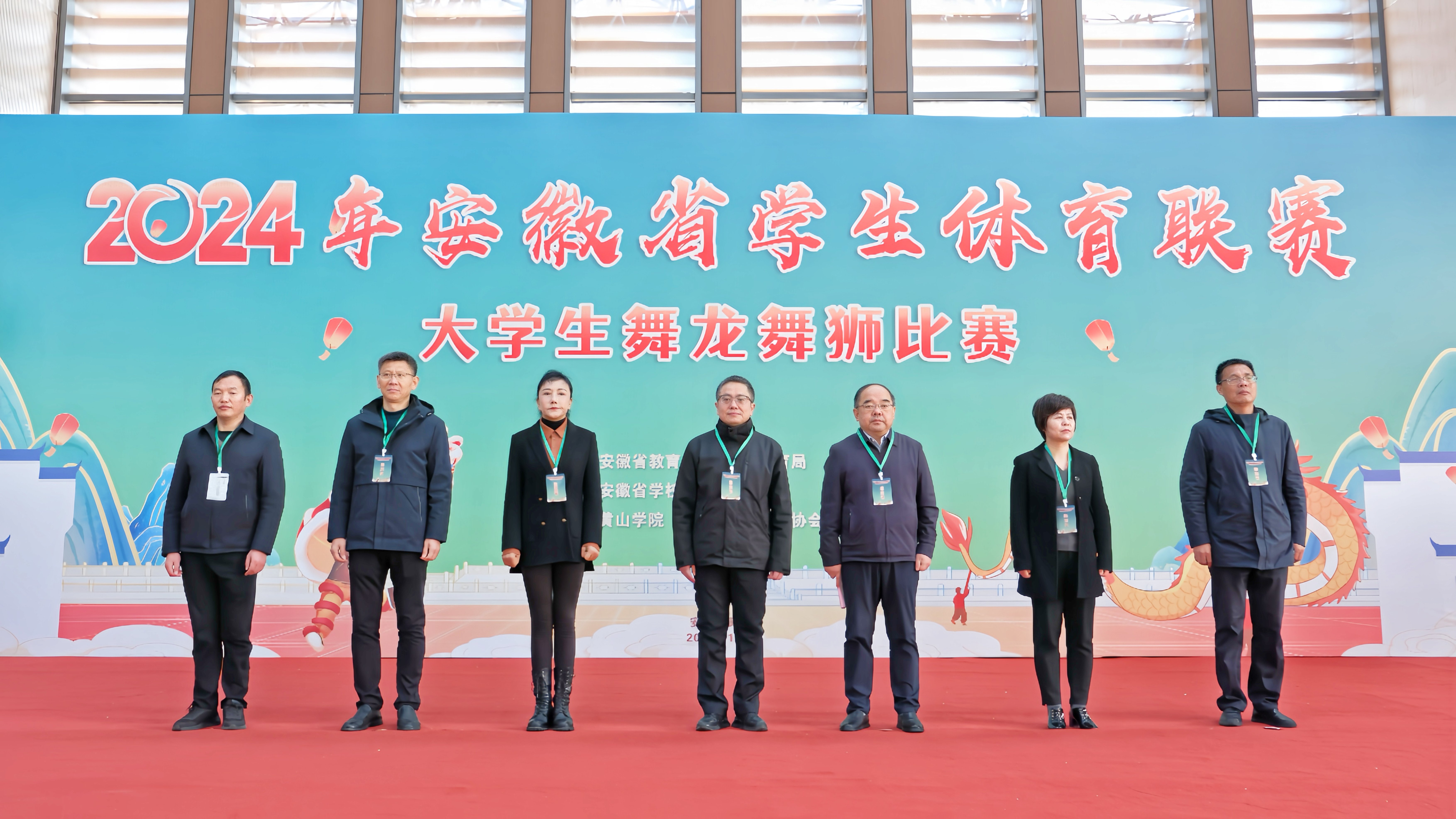 2日上午,2024年安徽省学生体育联赛大学生舞龙舞狮比赛在我校风雨操场开幕。我校党委副书记、院长李庆宏,校党委委员、副院长张小明,安徽省学校体育协会副秘书长陈晓荣,黄山市体育局、黄山市教育局相关负责人出席开幕式。